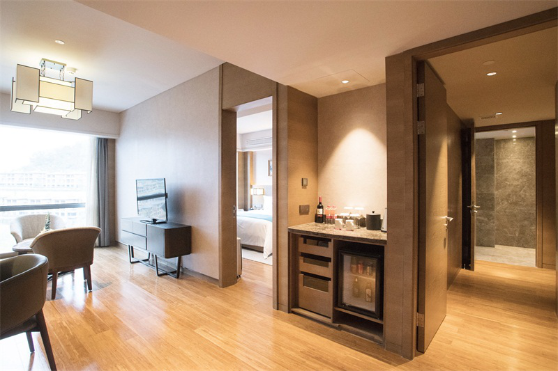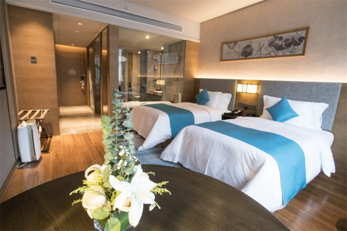 Hotel interior hotel has 284 deluxe rooms and suites, through the bright window can be listed as the thousand island lake charming scenery. Guest room combines classical harmony tonal photograph echo with the beauty of the thousand island lake, build a warm and elegant atmosphere make.